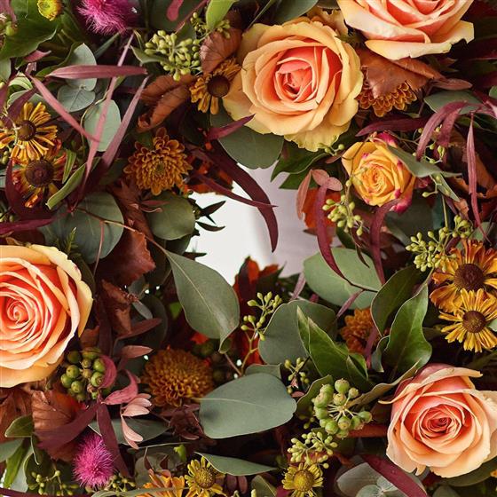 Who said wreaths are only for Christmas? Not us. This gorgeous celebration of the season is part of our on trend collection – which is all about the softer colours of autumn. Expect to see fresh or dried blooms in shades like russet, cream, apricot and chocolate.