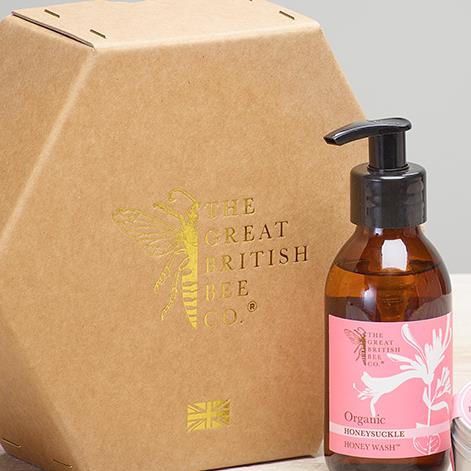 Featuring a honeysuckle scented 150ml honeywash and a 50g soothing hand balm presented in a honeycomb shaped gift box made from recycled cardboard - a bee-rilliant pampering treat.